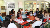 Die Schulradio-Macher kennen mittlerweile die journalistischen Darstellungsformen und diskutieren in der Redaktionskonferenz mögliche Themen.